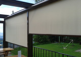 Dies reichte aber nicht aus, immer noch klagten Gäste über zu viel Wind, und auch bei Regen war der Schutz ungenügend. Aber eine zweite Glaswand war keine Option. Zwei nebeneinander montierte ZIPLINE sorgen nun für weniger Durchzug und somit für einen angenehmeren Aufenthalt. Die Terrasse kann so als zusätzlicher Raum genutzt werden, welcher die Kapazität des Bergheims merklich erhöht. Es können nun viel mehr Gäste unabhängig vom Wetter bewirtet werden. Die Senkrechtstoren fanden lobende Erwähnung im Jahresbericht 2014 des Hüttenchefs.