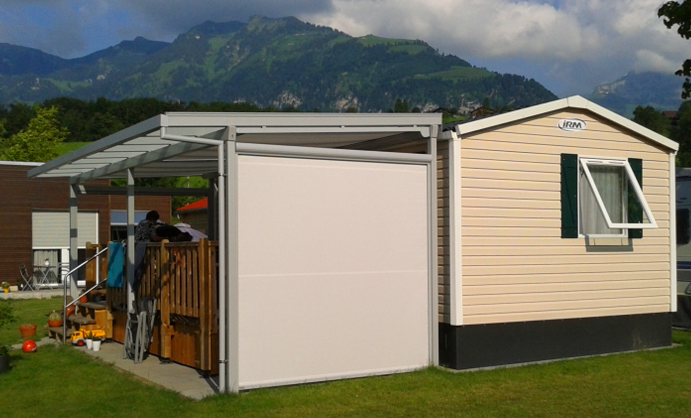 Viele dieser Standplätze verfügen über einen Vorplatz oder eine Terrasse. Die Beschattung dieser Plätze stellt eine Herausforderung dar, weil verschiedene Gegebenheiten berücksichtigt werden müssen:
