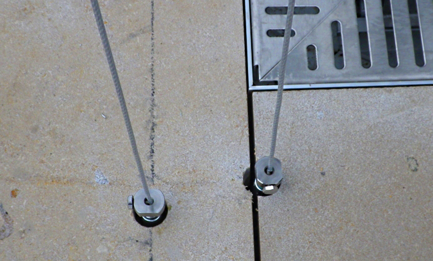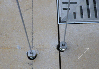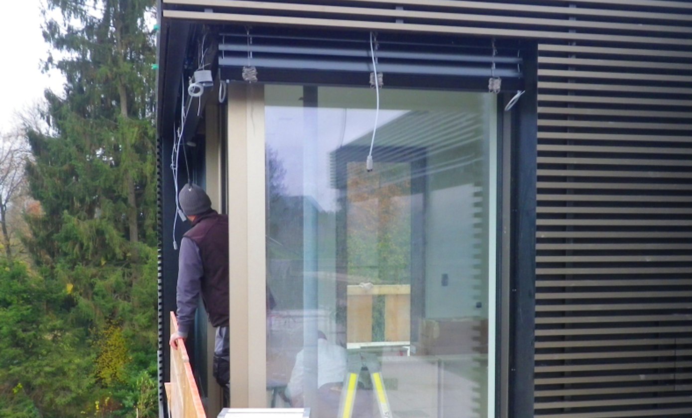 Am schönen Zürichsee steht nun aber ein Einfamilienhaus, dessen Bauherr sich nicht mit Stangenware zufrieden gibt. Das ist verständlich, denn diese würden die aufwändigen Fassade des eleganten Hauses zerstören. Eine Herausforderung bestand darin, die bis an die Hausecke reichenden Fenster vollständig zu beschatten. Konventionelle Führungsschienen können hier nicht verwendet werden, weil diese stören. Die Lösung besteht aus Seilführungen, deren Abschlüsse unter den vorhandenen Steinplatten befestigt werden.